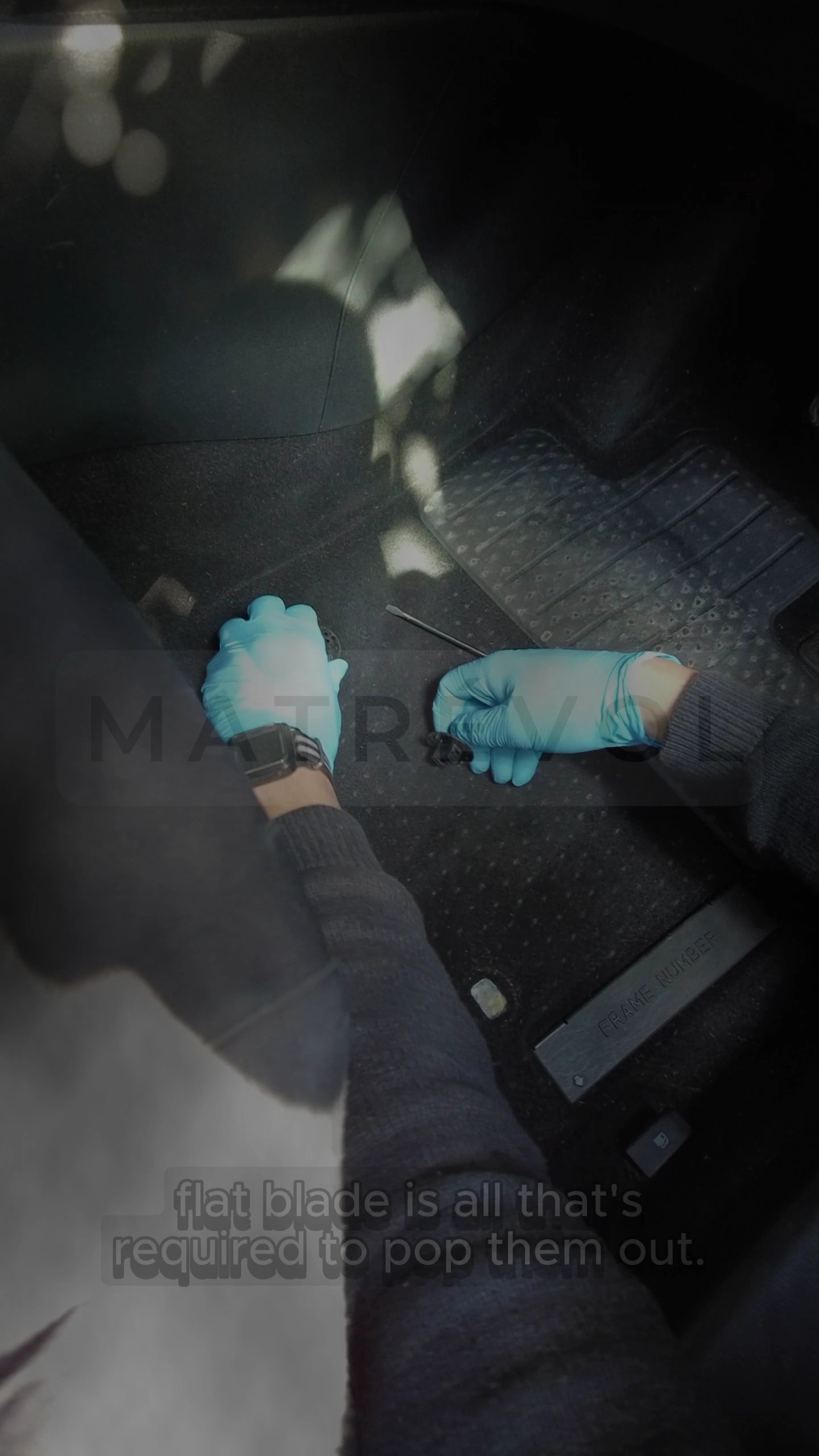 Before installing your MATRÉVOL mats, remove your old mats and give your footwells a thorough clean. Vacuum up dust and debris, and detail the surrounding trims for the best possible fit and finish. This ensures your new mats sit flat and stay secure.
