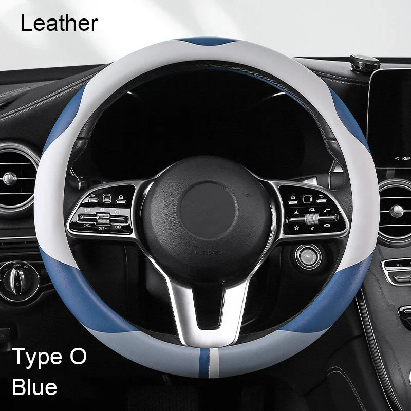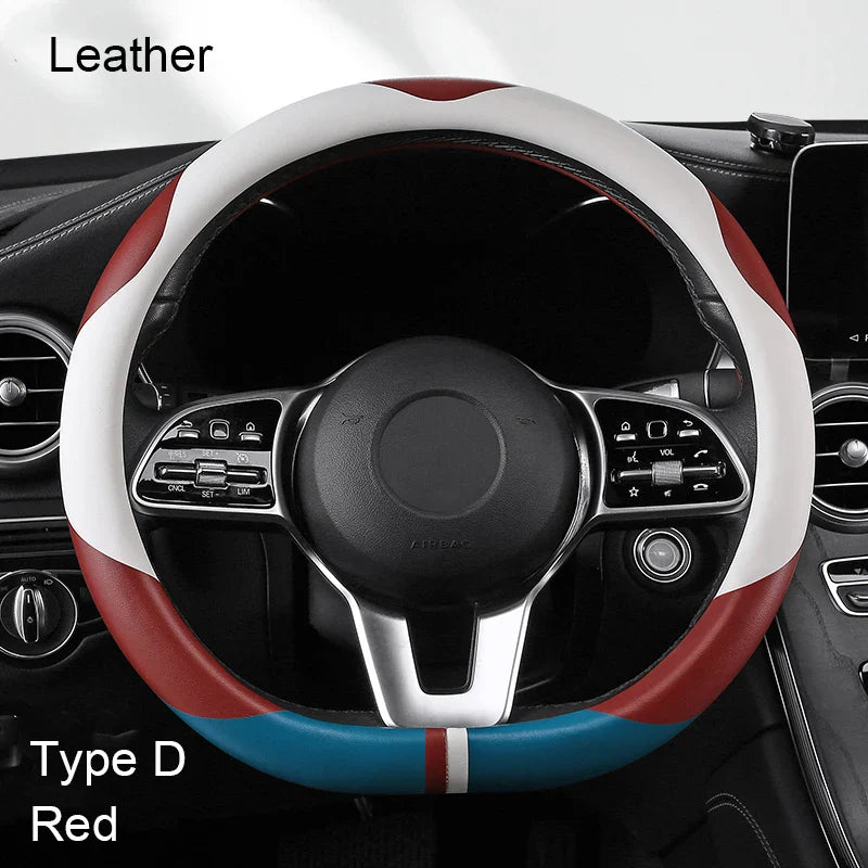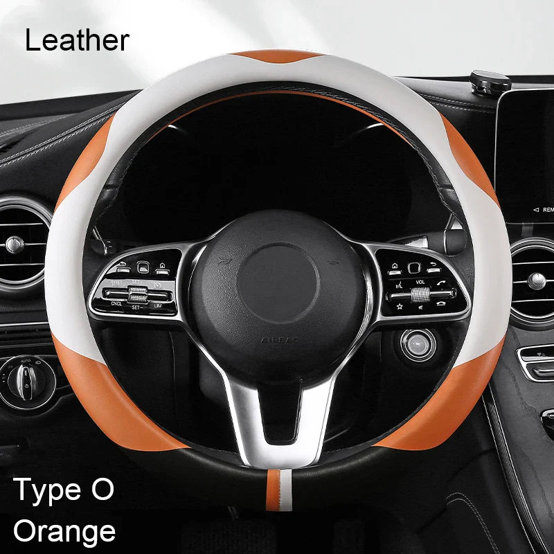 38 cm Luxury Leather Steering Wheel Cover – Universal Fit