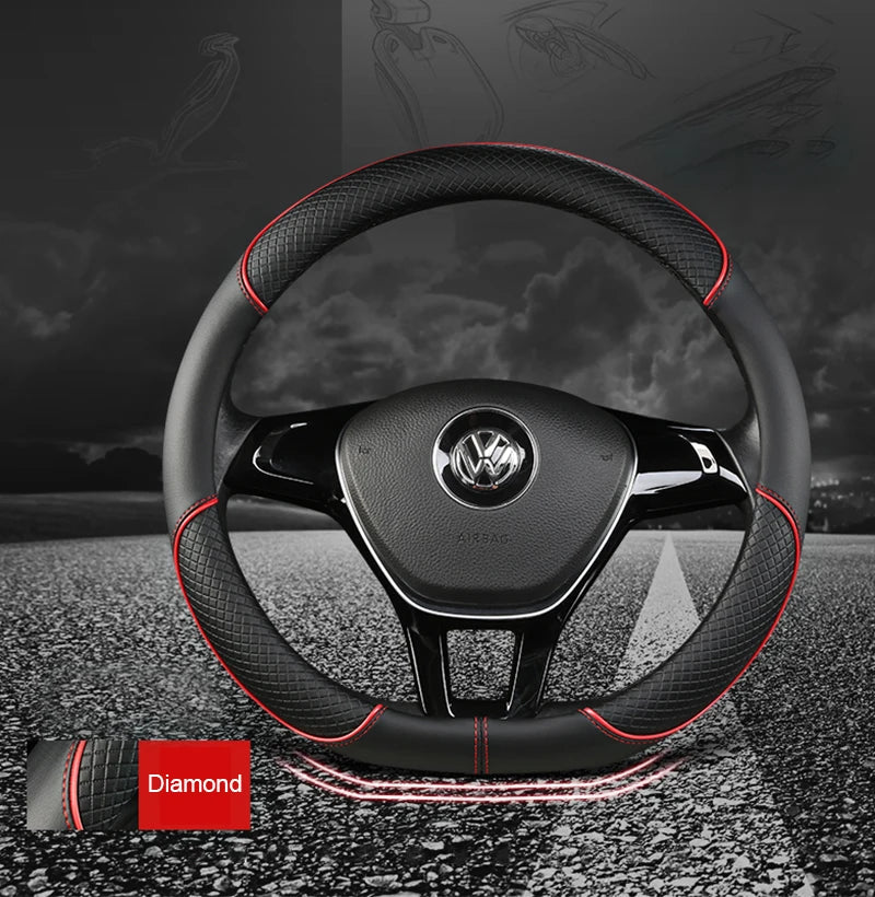 38 cm Universal Leather Steering Wheel Cover – For Cars and SUVs