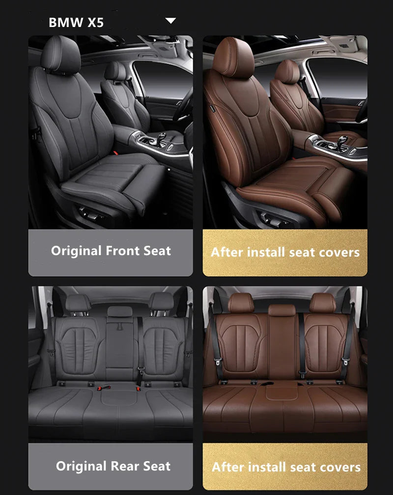 Elevate your BMW X5's interior with these leather seat covers, designed for both luxury and durability. Crafted to be fully compatible with your vehicle, they offer a snug fit that enhances every journey.