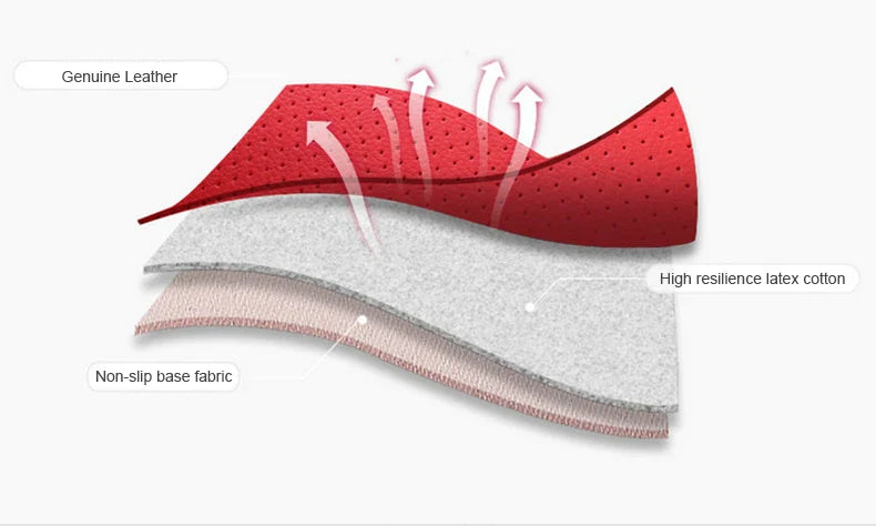 - Perforated cowhide leather in the center panel for breathability and natural comfort